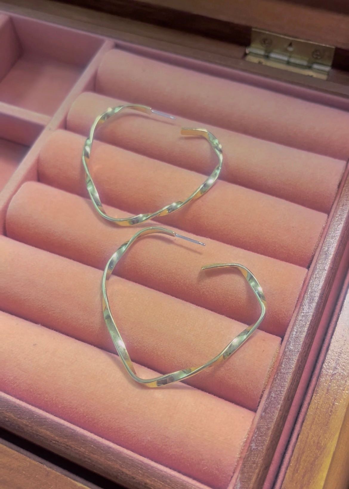 Dreamy, delicately rendered statement earrings, with a twisted ribbon effect. Brass body with sterling silver posts. 43mm drop.