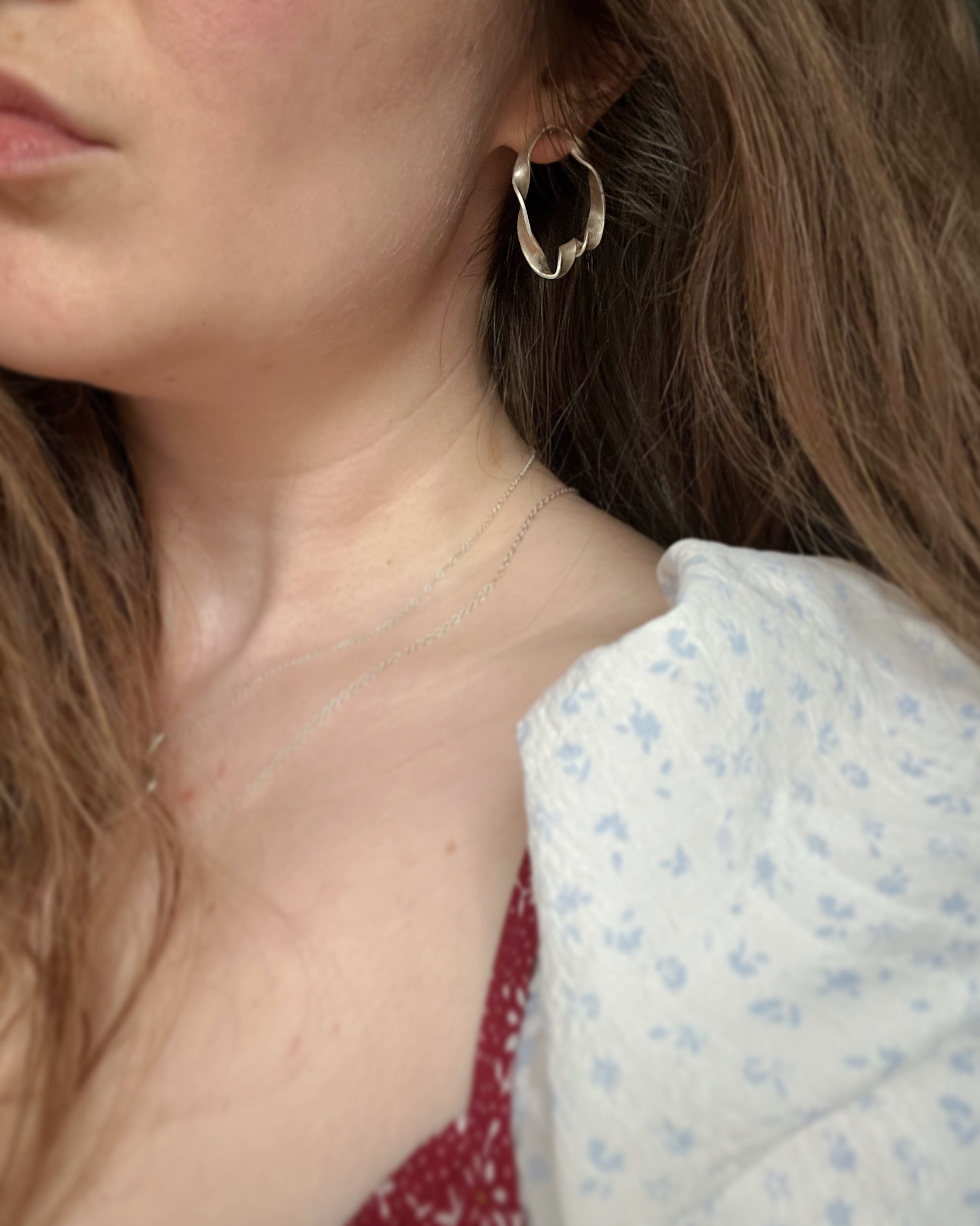 Handcrafted, subtle statement earrings with a brushed satin finish.